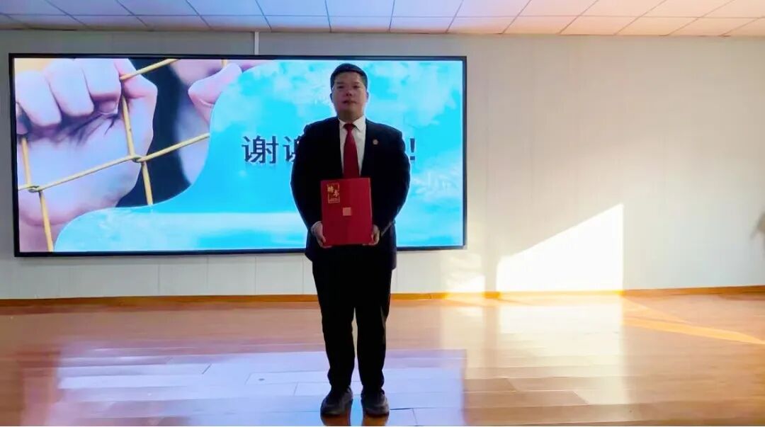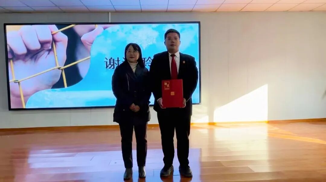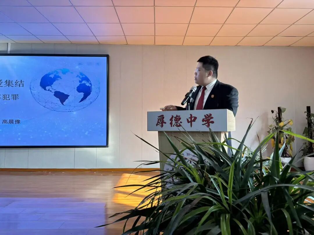 讲座最后,厚德中学的秦校长为裕华区人民法院的高晨豫颁发了聘请证书,聘请为厚德中学的法治副校长。