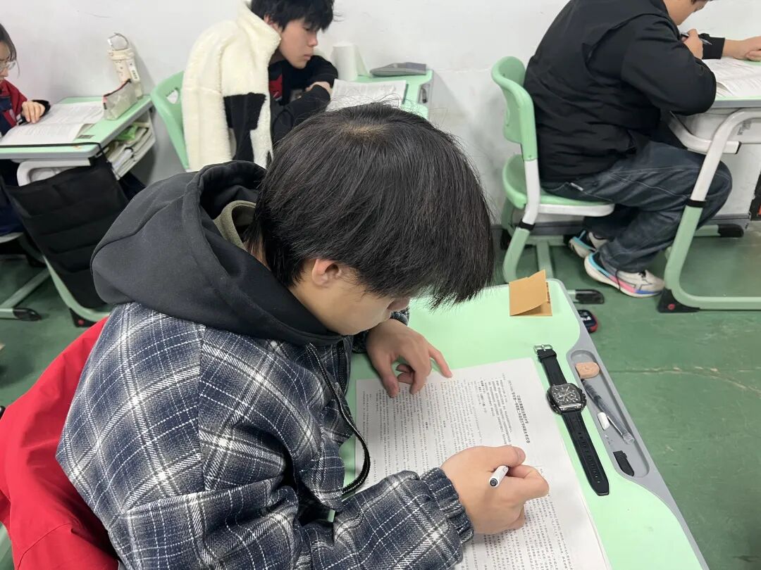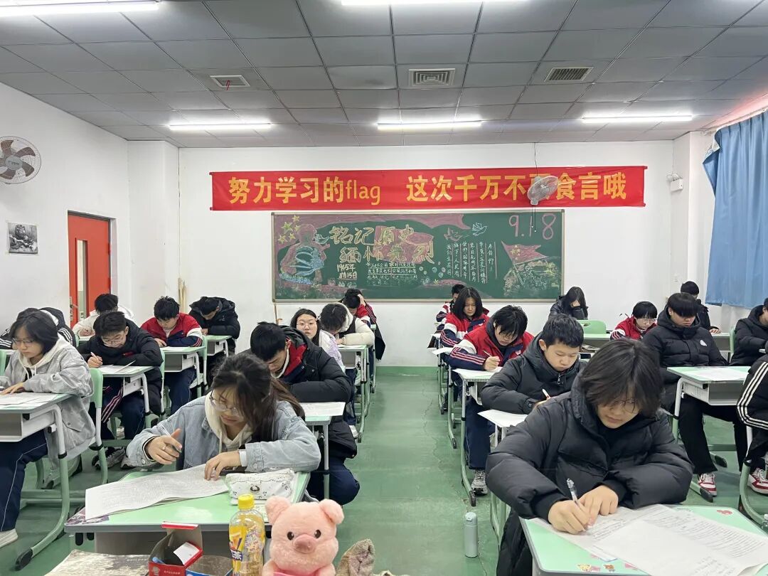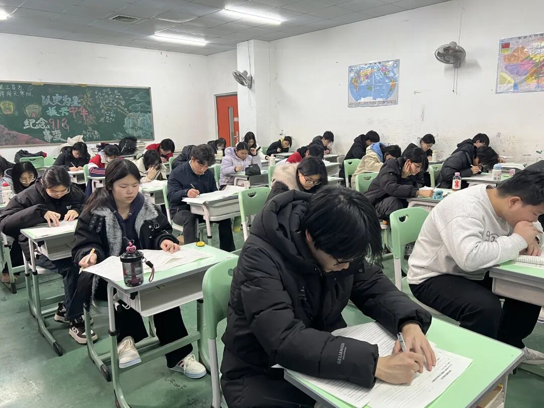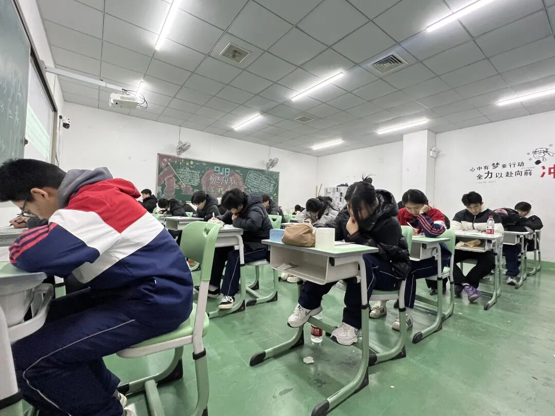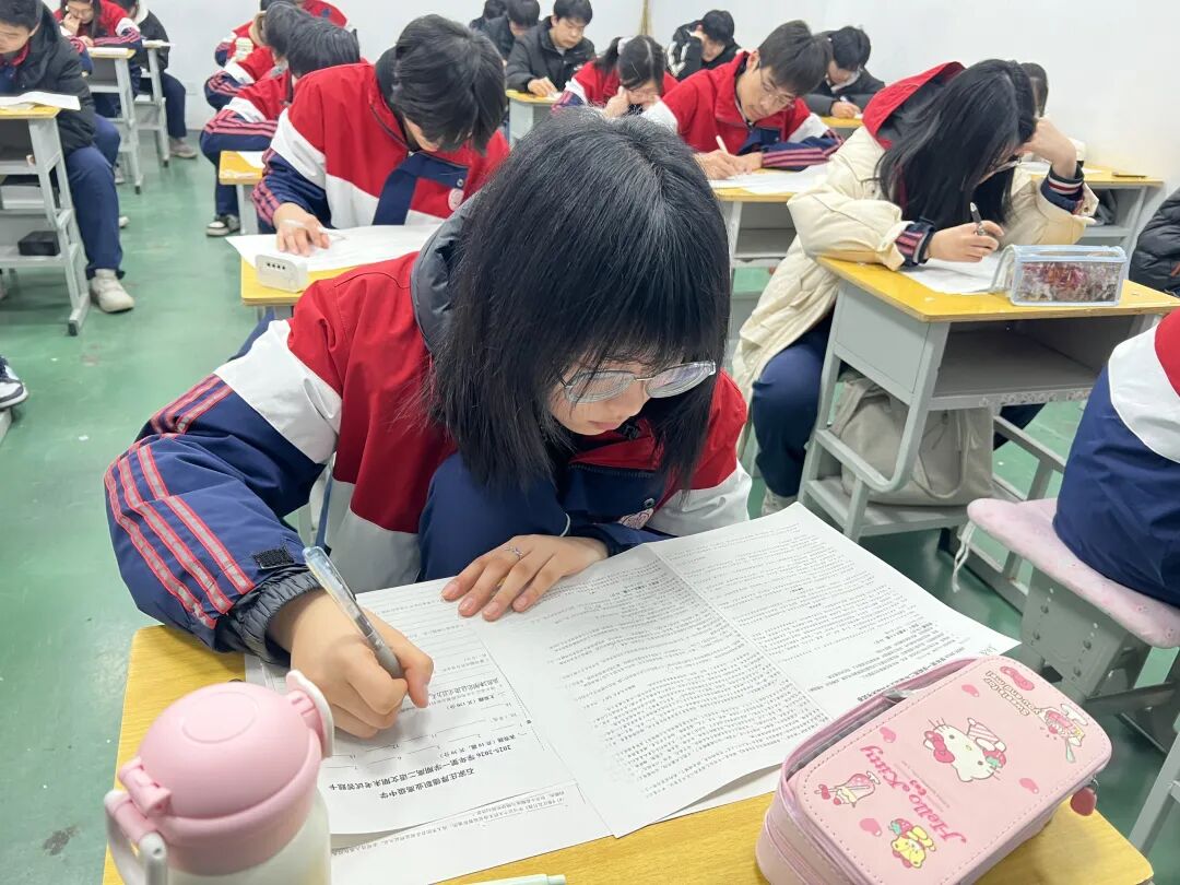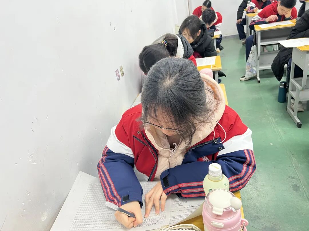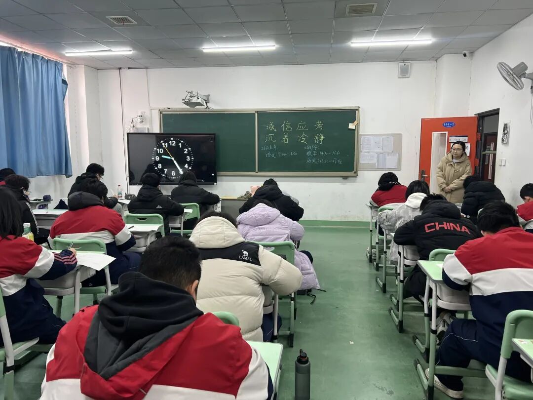 铃声响起,同学们迅速进入考场状态。考场内静悄悄的,只余纸笔摩擦与翻阅试卷的声响,学生们全神贯注,沉着应考,展现出扎实的知识储备和良好的心理素质。这份专注自律的考场氛围,正是学子们诚实守信、踏实向学作风的生动写照。